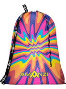 he AMANZI Sundance Mesh Bag features a vibrant print that simply radiates energetic vibes. Bursting with the essence of bright sunshine, this print showcases wavy sunrays that seem to dance in a jubilant display, with the colours exuding the warmth and vivacity of the sun's rays in the sky. Each stroke embodies a joyful rhythm, evoking a sense of vitality and a mesmerizing connection to the celestial dance of light.