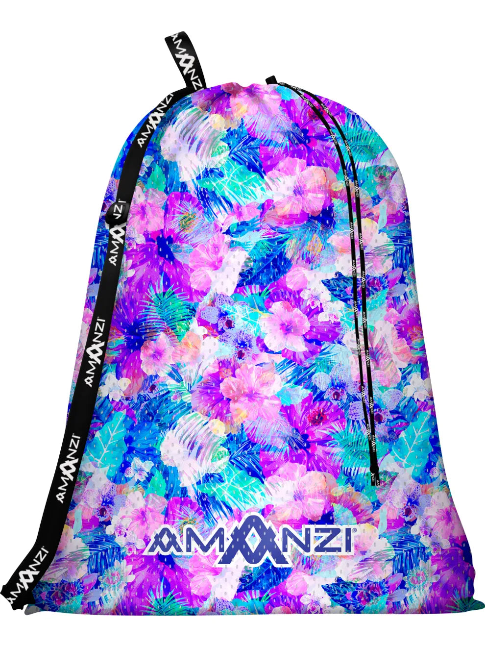 The AMANZI Wild Blooms Mesh Bag has been designed to fit all of your swim equipment including kickboard, fins, hand paddles, pull buoy, centre snorkel, cap, goggles and drink bottle. The mesh fabric is breathable allowing all of your equipment and the bag itself to dry out quickly after use. The unique prints in the AMANZI range makes the bag easily identifable, especially when storing it at the clubhouse with other squad mates gear.