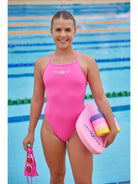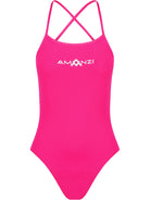 The Pixie Tie Back One Piece Swimsuit is an all purpose training swimsuit with a fashion edge. Ideal for both competitive and active pool and surf swimmers. The thin tie back straps are fully adjustable to provide the perfect fit. The wide open back follows the natural contours of the body providing an ergonomic fit and superior comfort. The womens sizes have a high leg height providing a skimpier fit ideal for those wanting less coverage. The girls sizes feature a medium leg height for a more conservative fit. All tie backs feature the signature AMANZI logo on the chest and the A logo on the lower back.