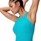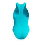Our supportive Solid Racerback Zip Swimsuit is built for fitness and active swims. Made from Endurance Pro fabric with four-way stretch, it resists chlorine and pilling for lasting comfort and durability. A 360-degree comfort elastic underband offers medium bust support during medium-intensity workouts, while the racerback design with back zip supports a full range of shoulder mobility. Cut with classic coverage. Body made of 57% recycled polyester, 43% recycled polyester PBT.